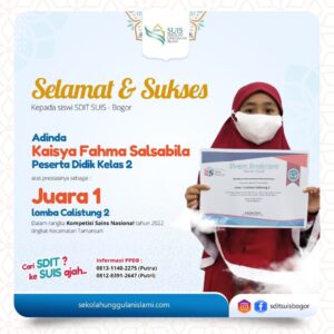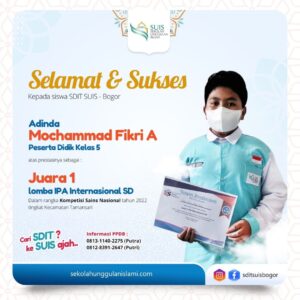 SDIT SUIS adalah Sekolah Dasar Islam Terpadu di Bogor yang berfokus pada pembentukan siswa cerdas dan berakhlak mulia. Sekolah ini mengintegrasikan kurikulum nasional dengan pendidikan agama Islam untuk memberikan pembelajaran yang seimbang. Selain akademik, SDIT SUIS juga menyediakan berbagai kegiatan ekstrakurikuler guna mengembangkan bakat dan minat siswa, dengan dukungan tenaga pendidik profesional serta kerja sama yang erat dengan orang tua.